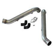 Engineered utilizing CAD software to ensure perfect fitment and optimal flow. Manufactured from precision mandrel-bent 304 Stainless Steel to minimize heat transfer from the engine bay to the charge air. Constructed utilizing 2' diameter tubing with flared ends to mate up snugly with OEM or aftermarket intercooler outlet hoses and throttle body boots. Each bipipe features beaded ends to prevent hoses from blowing off under boost, and 1' nipples for diverter valves (stock is 3/4'). 'Stealth' water-methanol injection bungs are welded underneath each of the bipipes to accommodate WMI kits.