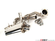 Billy Boat's turbo-back exhaust is a stainless steel mandrel bent system. Our turbo-back exhaust begins at the 2.5" downpipe which leads to a catalytic converter then continues with 2.5" center pipe which contains a small 3" resonator. The 2.5" pipe continues back to the BB muffler and ends with Twin Polished turn down tips. With TIG welding fully stainless construction and CNC'd hangers you will not find a higher quality system on the market.