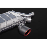The iconic CAPRISTO Valved Exhaust System offers the best of both worlds through its capability to produce an aggressive exhaust note under acceleration and a more subdued sound for city driving. At lower engine speeds and during cruise operation the valves are closed and produce a deeper exhaust note. At wide-open throttle the valves open, releasing the full symphony of the engine.
