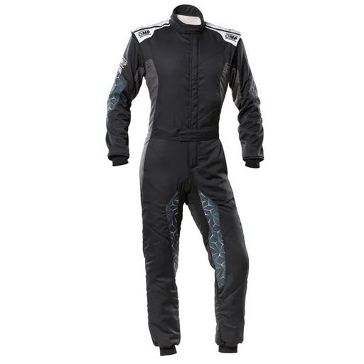 OMP RACINGSuit - Tecnica Hybrid - Driving - 1-Piece - FIA Approved - Double Layer - Nomex - Black / Silver - Size 54 - Large - Each