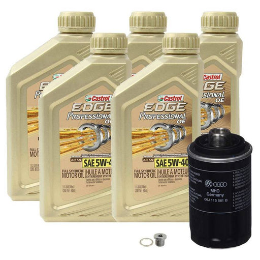 GENUINE VW/AUDIKit Includes: 5 x Castrol 152C7E SAE 5W-40 Engine Motor Oil (1 Quart) 1 x Rein HWP0014 Engine Oil Drain Plug 1 x Mann-Filter W 719/45 Engine Oi...