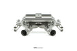 Removal of the stock catalyst, and replacing with either high flow HJS race cats, or de-cat pipes, opens up the sound significantly. The sound is then enhanced by our trademark 1D CLR x pipe, raising the pitch to a true F1 sound. On valves open the gases pass directly through the x pipe bypassing the silencer, for a raw unadulterated high piytched F1 scream. On valve closed, the gases are directed through a specially designed harmonically tuned silencer, that completely eliminates cruising drone, making for a comfortable ride when you need it, and a howling race car sound when you want it! Available in standard 304 grade stainless, or Formula one grade Inconel 625 for the ultimate in exotic light weight exhaust.
