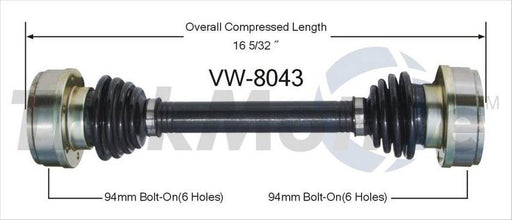 View full detailsVW CV Axle Shaft – Front Driver Side (Manual Transmission) – Aftermarket VW8001