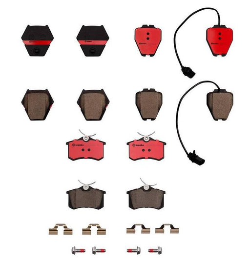 BREMBOKit Includes: 1 x Brembo P85127N Front Disc Brake Pad Set Ceramic 1 x Brembo P85117N Rear Disc Brake Pad Set Ceramic 1 x eEuroParts XHDZ026 Fro...